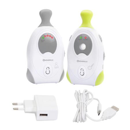 Baja potencia de emisión Economía de energía gracias al modo VOX (activación por voz) Alcance: 300 m 2 canales de recepción Función lamparita de noche Modo vibración Funciona con pilas o con corriente Garantía de por vida