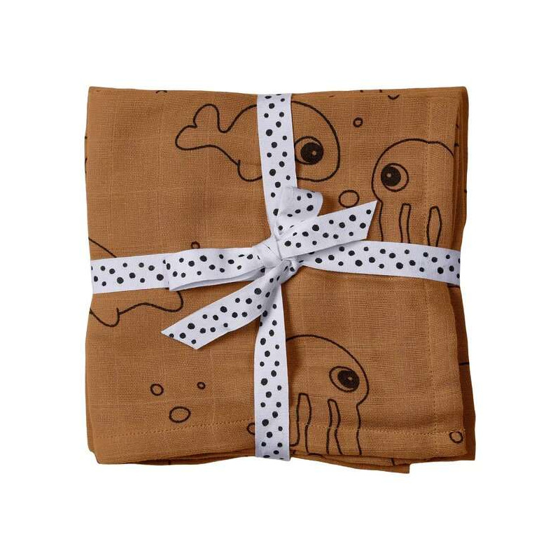 PACK 2 MUSELINES SEA FRIENDS MUSTARD DONEBYDEER