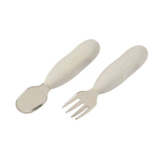 Mango corto con líneas redondeadas: para adaptarse a las manos pequeñas de los niños Diseño desarrollado con un especialista: agarre optimizado para utilizarlo de 3 formas (agarre con la palma de la mano, con la pinza o con el puño) Muescas en el mango: simplifican el manejo en todas las configuraciones Forma simétrica: puede utilizarse con la mano izquierda o derecha Dimensiones de la boquilla adaptadas a la boca de los niños pequeños Cuchara poco profunda: para evitar la sobrecarga Tenedor eficaz y seguro, ligeramente redondeado para mayor seguridad Mantenimiento: se puede lavar a mano o en el lavavajillas