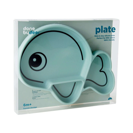 Lindo y práctico plato de silicona Stick & Stay en color azul con forma de Wally. Fabricado en silicona de calidad alimentaria y libre de BPA. Con tres compartimentos, este plato también es perfecto para los más exigentes con la comida. Los bordes interiores redondeados facilitan la recogida de alimentos con una cuchara o un tenedor. La ventosa mantiene el plato en su lugar y ayuda a los pequeños a practicar sus habilidades alimentarias. Presione el plato hacia abajo y se adherirá a la mayoría de las superficies lisas, evitando que los más pequeños lo vuelquen o lo arrojen. Debajo de la cola se esconde una solapa de fácil liberación. Este práctico plato infantil es de un suave azul pastel con un estampado de contorno negro. La forma de la ballena Wally hace que su uso sea muy divert