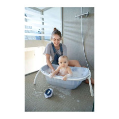 Edad Recomendada: De 0 a 12 meses. Bañera Textil ultra compacta. Zona textil termoconformada sin costura: Se adapta al cuerpo del niño para un mayor confort. Contacto ni duro ni frío. Superficie no deslizante. Plegable: Facilita la recogida y el transporte. Ocupa sólo 7 cm de grosor una vez plegado. Gancho táctil integrado: Se puede colgar. Soporte para pomo de ducha lateral: Para facilitar llenar la bañera y aclarar al niño.