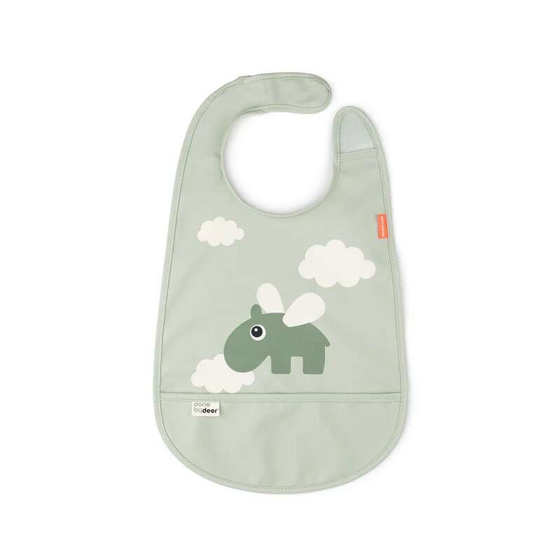 Ozzo está listo para hacer que la hora de comer sea menos complicada. Este práctico babero impermeable con velcro es fácil de limpiar y tiene un bolsillo inteligente para recoger la comida que falta. Esto le ahorrará mucho tiempo de limpieza. El babero suave tiene un cierre de velcro que hace que el babero sea muy fácil de poner y quitar. El bonito babero tiene un suave tono verde y está decorado con Ozzo y nubes felices.