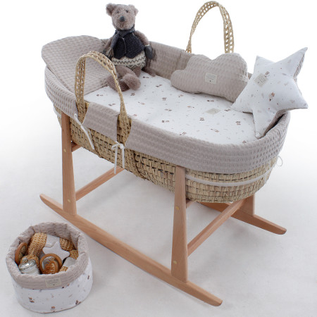 Refleja tu estilo con este confortable conjunto compuesto por capazo de mimbre con sus vestiduras y colchón. Los recién nacidos no soportan los espacios abiertos, sus recuerdos de la felicidad son el útero materno y están acostumbrados a notar los límites de sus paredes, por ello para mantenerles más recogiditos… los conjuntos de capazo son ideales esos primeros meses del bebé y todo un capricho en la habitación! *Capota de capazo opcional, no incluida (se vende por separado) * Soporte de capazo PCX no incluido (se vende por separado) Oeko-Tex Standard 100 certificada, lo que significa que todos los materiales son probados y libres de sustancias nocivas Si te gusta puedes encontrar otros interesantes artículos de la colección, en esta misma línea con las mismas altas calidades.