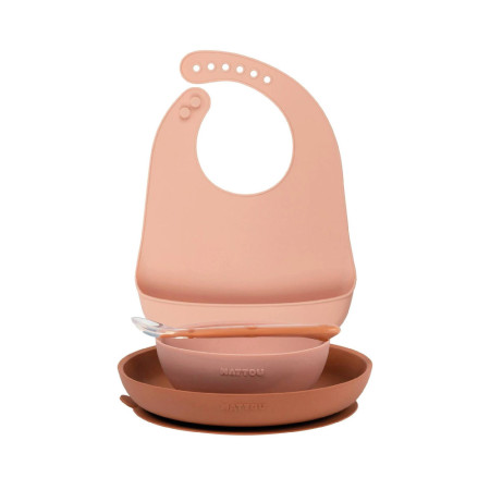 VAJILLA 3PCS+BABERO SILICONA PINK NATTOU