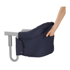 Con la práctica sillita de mesa, cualquier comida se transforma en un momento para compartir en familia, ya sea en casa o en un restaurante. El pequeño puede ocupar por primera vez un lugar en la mesa, igual que los mayores.Se puede llevar a cualquier parte gracias a que ocupa muy poco espacio cuando se pliega y a que cabe en la práctica bolsa de transporte que incluye. En la parte posterior hay un compartimento muy útil donde se puede guardar el chupete, el biberón o el babero. Gracias a su gran variedad de pinzas, también puede utilizarse en mesas con tablero más grueso. El acolchado suave y el respaldo vertical permiten al bebé estar cómodo durante las comidas. La bandeja (opcional) Este accesorio opcional se instala con facilidad y se puede lavar en el lavavajillas. La bandeja es