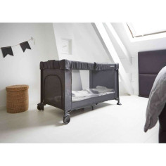 La cuna de viaje de Koelstra podrás usarla durante las primeras semanas con con el elevador. De esta manera no tendrás que agacharte demasiado para levantar a tu hijo/a. Con una cremallera resistente puedes fijar fácilmente el suelo adicional. Cuando su hijo/a pueda sentarse, podrá quitar el elevador adicional. La cuna de viaje se puede montar en dos sencillos pasos: ¡girar, hacer clic y terminar!
