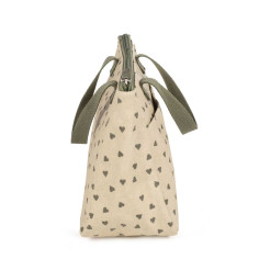 El neceser de bebé Poppy Musgo de corazones es un bolso especialmente pensado para llevar todos los productos de aseo de nuestra niña o niño al salir de casa. Es un modelo diferente y moderno con mucho estilo para adecuarse a lo que necesitas. Su diseño simple y cómodo de forma rectangular ofrece comodidad gracias a su distribución con varios compartimentos para transportar todos los artículos de aseo de tu bebé que por ser tan pequeños a veces se pierden dentro del bolso canastilla y aquí puedes tenerlos todos ordenados y siempre a mano. Cuenta con asas ubicadas en la parte superior para cargar el bolso y tiene un cierre seguro de cremallera para evitar que algo pueda salirse. Gran calidad y mucho estilo