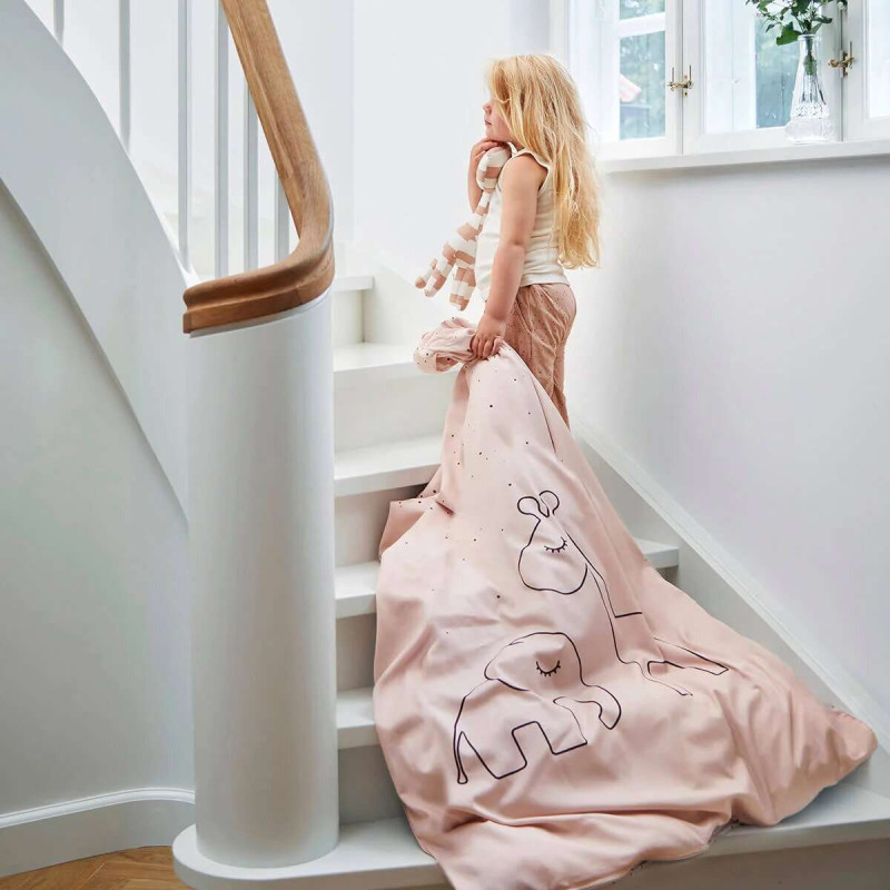 Estoy hecho de: 100% algodón. Funda nórdica y funda de almohada con cremallera oculta de seguridad. Certificado Oeko-Tex. Este producto está certificado según OEKO-TEX® STANDARD 100 en el HOHENSTEIN Textile Testing Institute. Número de certificado 15.HTR.57912. Soy así de grande: Edredón: 70 x 100 cm - Almohada: 40 x 45 cm Cómo cuidarme: Lavable a 60°C. No secar en secadora.