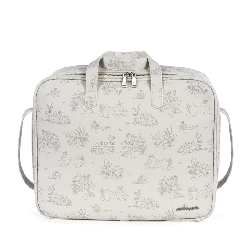 La maleta de bebé Toile de Jouy Cream de Pasito a pasito es la bolsa perfecta para el hospital/clínica, un modelo único con mucho estilo especialmente pensada para que puedas llevar todo lo que necesitas para ti, el papá y el bebé. Está elaborada en resistente y suave polipiel impresa. Su forma rectangular que brinda comodidad para tener cubiertas todas tus necesidades (mudas o accesorios) durante el día del nacimiento del bebé. Es un diseño simple, moderno y práctico que ofrece gran capacidad para llevar muchas cosas y es de práctica apertura para facilitar la búsqueda de lo que sea que hayas guardado.
