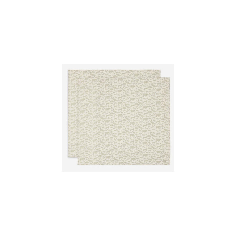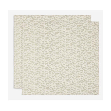PACK 2 MUSELINES ANIMALS OLIVE GREEN 115*115 JOLL