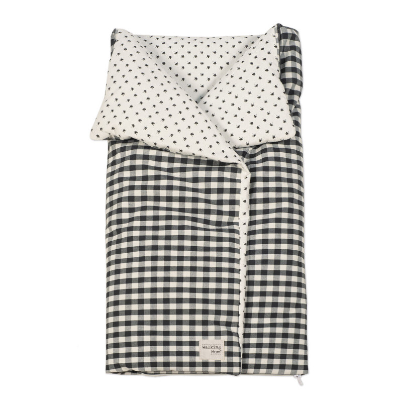Saco arrullo o saco manta Remy en cuadro vichy XL negro ideal para los primeros dias del bebé. Es perfecto para los primeros paseos en el capazo. Se convierte en una manta para la cuna. Practico cierre tipo sobre con velcros y cierre con cremallera en la parte inferior en los pies para que el bebé esté abrigado. Gran calidad y mucho estilo. Fabricado en materiales resistentes y de fácil limpieza a mano o a máquina a 30 °C. Walking Mum protege a tu bebé utilizando los mejores tejidos, libres de colorantes azoicos y sustancias nocivas para la salud. Nuestra colección Walking Mum está diseñada con un particular sello de estilo urbano y moderno que no pasa desapercibido, para vestir diferente los paseos con tu bebé. Los accesorios de esta línea son más sport y prácticos, especialmente pensado