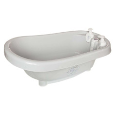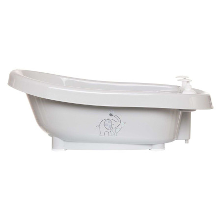 Esta bañera para bebés de Bebejou, thermobath viene provista de un termómetro que le indicará la temperatura del agua, dos dispensadores de jabón y un tubo de desagüe.
