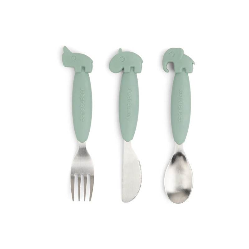 SET CUBERTS CUTLERY DEER FRIEND GREEN DONEBYDEER