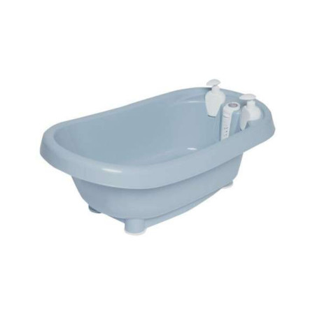 Esta bañera para bebés de Bebejou, thermobath viene provista de un termómetro que le indicará la temperatura del agua, dos dispensadores de jabón y un tubo de desagüe.