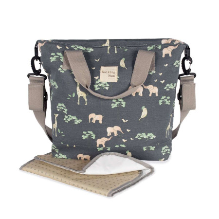 Bolso cambiador Baobab en estampado sabana para silla de paseo que incluye cambiador para bebe. Bolsa canastilla muy ligera, resistente y de gran capacidad para llevar todo lo necesario para el paseo del bebe. Tiene multiples bolsillos para poder tener todo ordenado y a mano. La bolsa tiene un sistema universal de fijación, con 2 asas cortas ajustables que facilita la colocación en cualquier modelo de silla de paseo. También incorpora una asa larga para poder colgarla en el hombro y asas cortas de mano. Gran calidad y mucho estilo