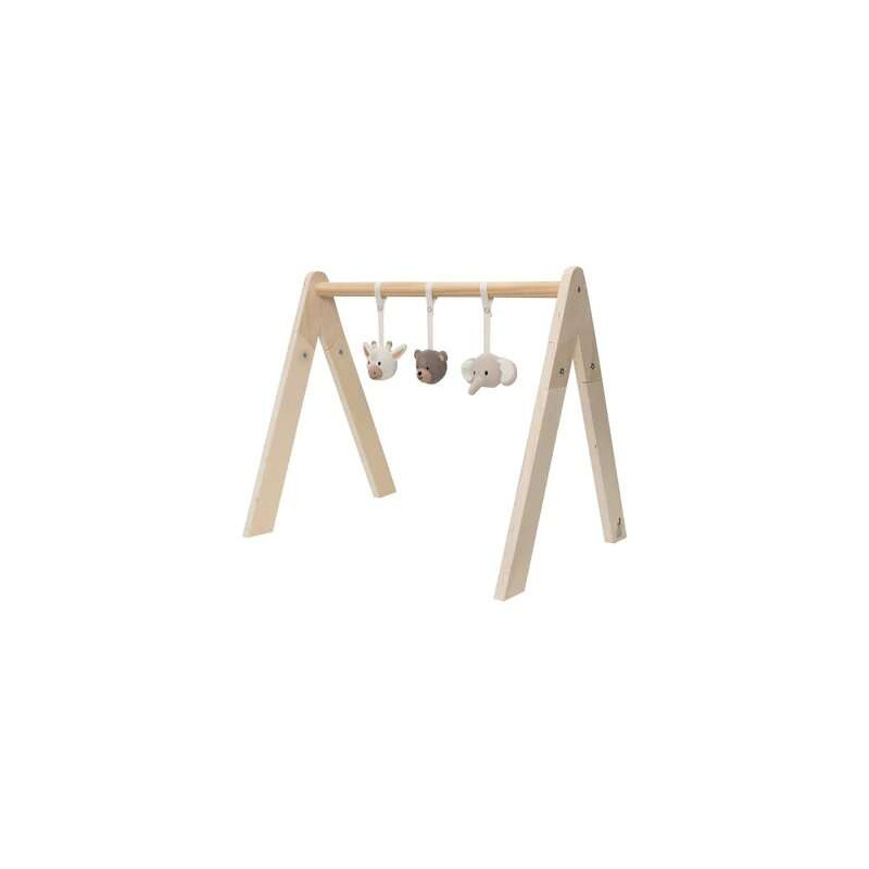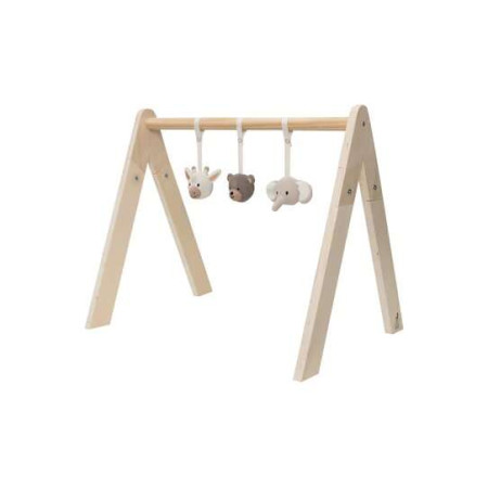 A partir de las 10 semanas, tu bebé necesitará cada vez más estímulos, tiempo de juego y cosas que ver. Este es el momento perfecto para desafiarlos con un gimnasio para bebés. Consigue el gimnasio para bebé de madera y decóralo con estas simpáticas figuras de la temática Animales. Estos alegres juguetes tienen forma de elefante, oso y jirafa. Coloque a su bebé debajo sobre una superficie suave y podrá jugar a su antojo. Tu bebé quedará fascinado con la forma en que se mueven los pequeños juguetes en el gimnasio para bebés. Dará patadas con entusiasmo o hará pequeños ruidos cuando consiga agarrar un juguete, o lo golpeará para que se mueva aún más. El uso del gimnasio para bebés estimulará la motricidad fina y gruesa de su bebé. Estimula los sentidos.