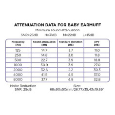 Protección auditiva especialmente diseñada para bebés. Aislamiento de 25 dB para una óptima protección acústica. Protege contra ruidos nocivos y música alta. Hermoso diseño, que incluye bolsa de almacenamiento.