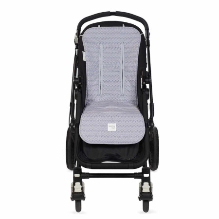La colchoneta para silla de paseo Zigzag con estampado geométrico en tonos azules es el forro ideal para cubrir el asiento de tu bebé durante el verano, protegiendo su piel de las rozaduras e irritaciones del calor y además mantienes el tapizado original como nuevo. Está elaborada con un material transpirable que ayuda a prevenir la sudoración excesiva del bebé y protege la sillita haciendo el paseo más confortable. Su esquema de uso universal te permite adaptar el colchón a la mayoría de las sillas de paseo, y dispone de varias aperturas (ojales) y ajustes con los que puedes colocarla de forma muy fácil en el asiento del coche. Gran calidad y mucho estilo
