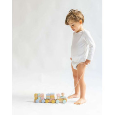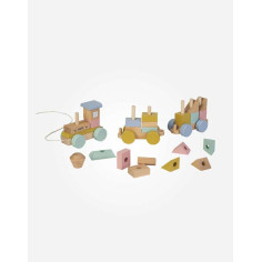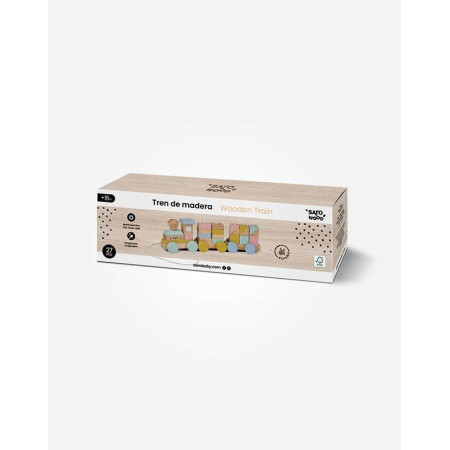 ¡Chu-chu! Este tren está a punto de salir de la estación de la diversión y tu peque marcará la ruta. Sus tres vagones están cargaditos de piezas apilables de distintos colores y formas que le ayudarán a desarrollar su coordinación mano-ojo y su motricidad fina. Desarrollará su imaginación diseñando sus vagones a su gusto para cada viaje. Cuenta con una cuerda para llevarlo de un lado a otro favoreciendo así su orientación espacial. Madera FSC. Contiene 27 piezas