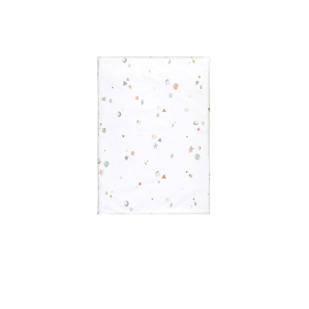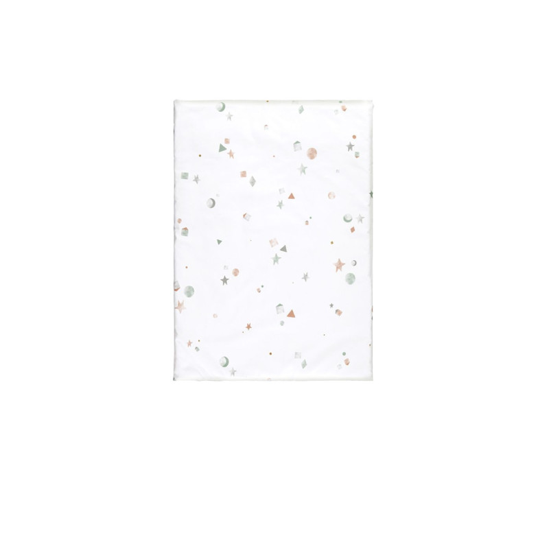 Algodón 100% Incluye relleno de fibra sintética 100% poliéster Desenfundable Medidas: Para minicuna de 50x80: 85x82 cm volantes incluidos.