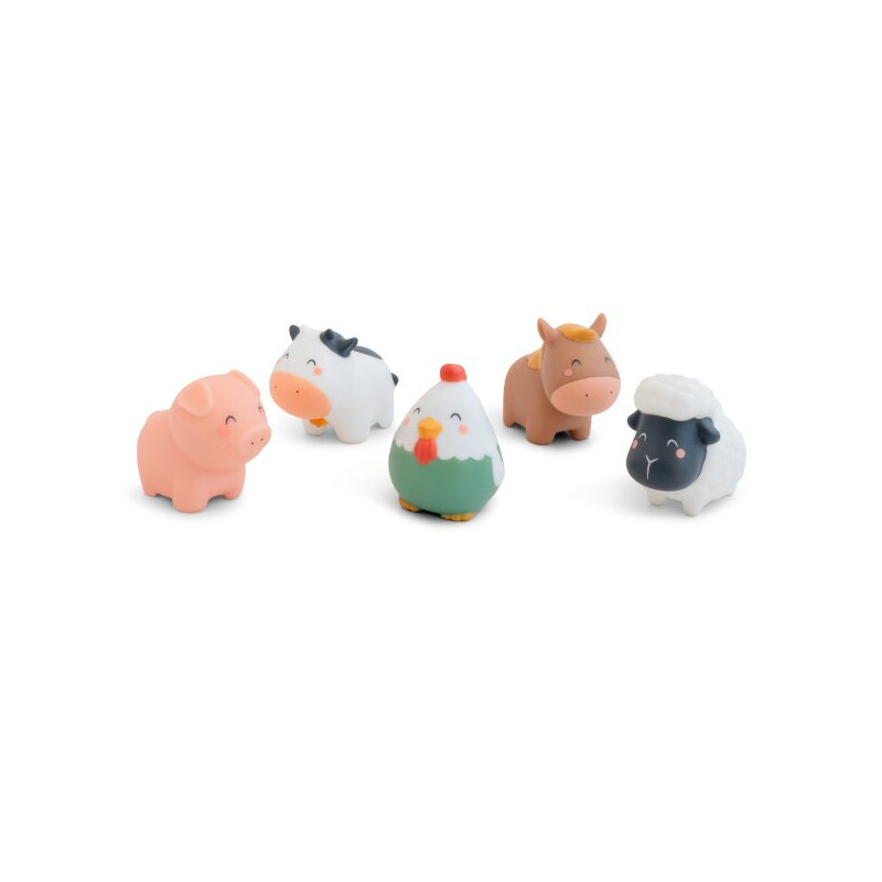 De la granja… a la bañera! esta familia de animalitos hará de cada baño una aventura campestre. ¡Que no pare la fiesta! gracias a su divertido diseño, su tacto suave y sus preciosos colores la diversión está garantizada.